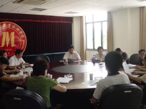 周院长结合学院实际,对教高16号文件和《行动计划》进行了针对性的解读。周院长指出,教高16号文件的基本内容可以简单概括为,课程建设、师资队伍建设,生产性实训基地建设,构建新的以“工学结合”为特征的人才培养模式。其关键词是培养高素质的技能型人才。根据我院实际情况,周院长对《行动计划》进行逐条分析,他认为,《行动计划》具有内容新、覆盖面广、措施实和导向强的特征,希望大家能够充分重视。会上,周院长还对学院《关于认真组织做好省教育厅行动计划有关教学建设项目建设的通知(讨论稿)》、《学院整改方案》和《教师工作业绩考核办法(讨论稿)》作了简要通报。